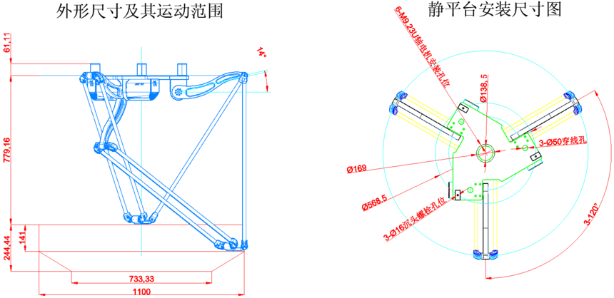 外觀尺寸及工作(zuò)範圍mm